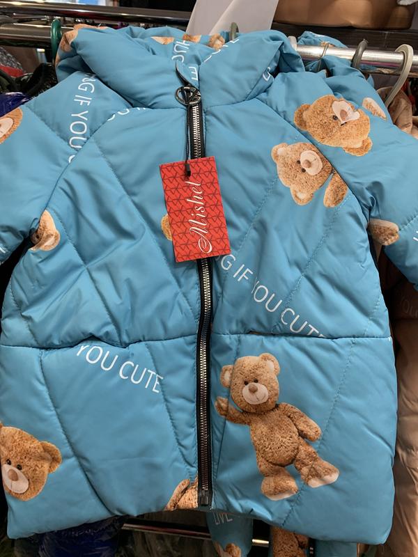 Куртка з капюшоном.Куртка з плащівки з принтом ведмедики.