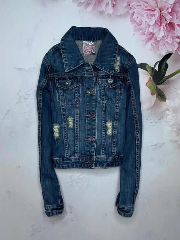 Куртка джинсова Надійно застібається на ґудзики На ґудзиках брендовий напис із кристалом Стильні потертості зі вставками з паєток Стан ідеальний 9-10 років/134-140 р Довжина 42. ПОГ 34. Рукав 54. ПОТ 32