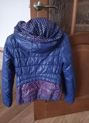 Тоненька курточка. Стан ідеальний. Є дефект на фото кинула. Рукавчики можуть бути закочені і навпаки. Не утеплена. Заміри: Дожина від капюшона 51 см Рукав 56 см. з закотом 51 см Плечі 36 см ПОТ 36 см ПОГ 38 см.