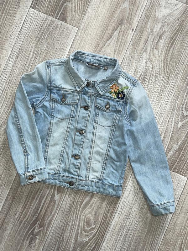 Джинсова курточка блакитного кольору з вишивкою Застібається на кнопки Стан чудовий 🏷Blue Queen 6 років/116 р Довжина 40. НОГ 32. Рукав 42