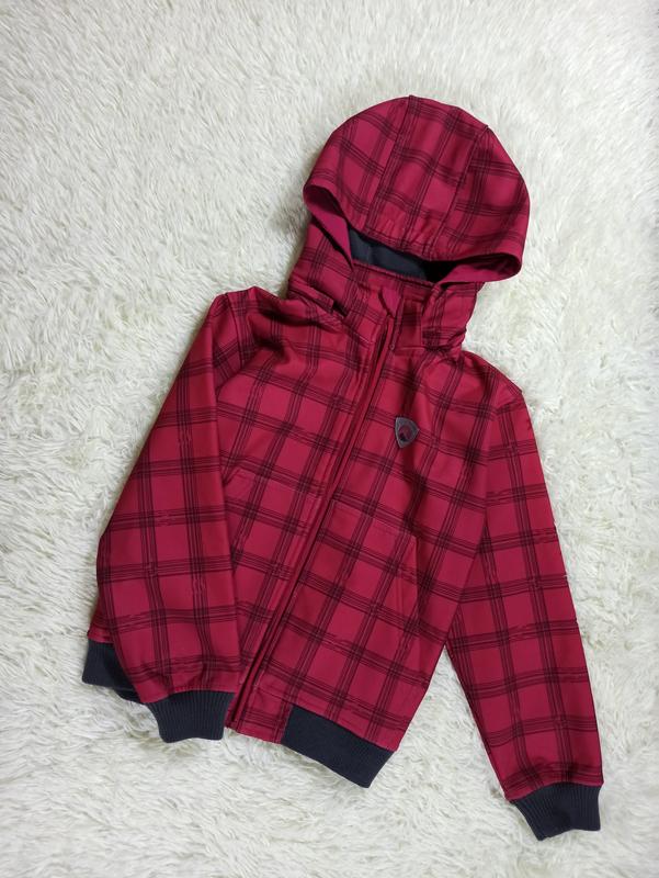 Яркая куртка софтшелл девочке в отличном состоянии. Капюшон глубокий и удобный, съёмный, на молнии. На микрофлисе. Вязаные манжеты и низ куртки. Длина 52см, плечи 39см, ПОГ 42,5см, рукавчик от плеча 49см, от горловины 59см. Покупайте и носите с удовольствием!)