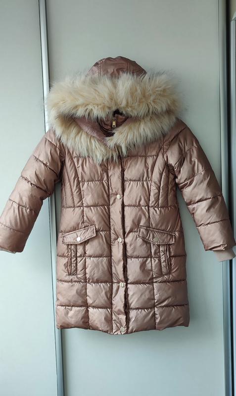Дуже тепла і зручна куртка на дівчинку фірми Next. Має недоліки на рукавах і на подолі. Показала на останніх фото. Ззовні не помітні, але можна виправити в ательє (є можливість підкотити рукава на 1см). На подолі взагалі не видно дефектів, вони з внутрішнього боку куртки. А взагалі класна, практична куртка. Має манжети від вітру і снігу, глибокий каптур з хутром. Фурнітура вся працює. Розмір 9Y (134см). ПОГ 45см, довжина 75, рукав 50, плечі 36см. .