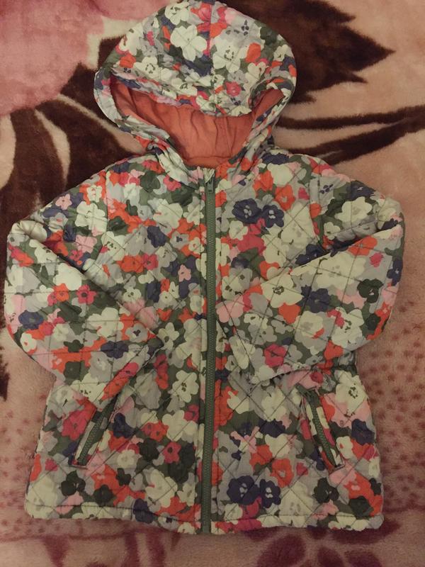 Чудова курточка для маленької принцеси. Легенька, стьогана, з тоненьким наповнювачем. Плечі 25 см., груди 32 см., рукав 35 см., довжина 40 см.