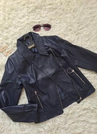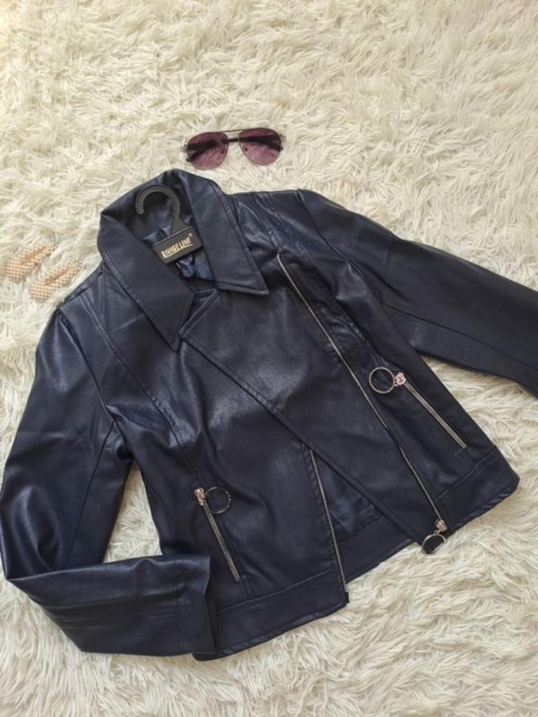 Косуха з екошкіри для дівчинки підлітка темно-синього кольору Розмір 38 (11-12років) Плечі 31см ПОГ 39см ПОТ 37см Рукав 55см Довжина 50см Розмір 42 (13-14років) Плечі 37см ПОГ 42см ПОТ 40см Рукав 60см Довжина 54см