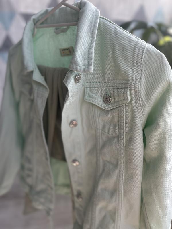 Джинсова куртка фісташкового кольору,фірми koton, на дівчинку 11-12 років 146-152 см Стан нового Донька не носила Заміри Висота 50 Ширина 43 Рукав 50