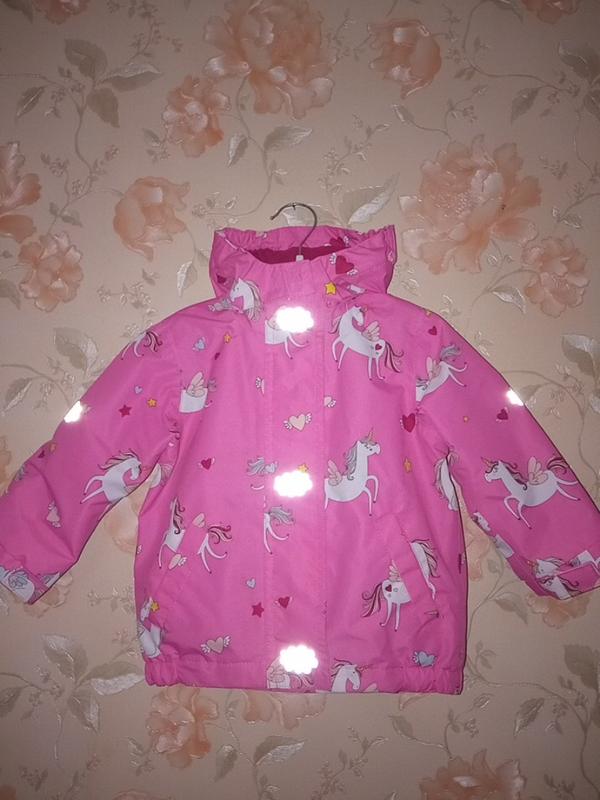 Вітровка на флісі для дівчинки з дуже гарним принтом. Майже не носили. Капюшон відстібається. Застібка на змійці та липучках. Заміри Довжина від плеча до низу 35 см. Ширина 32 см. Довжина рукава 28 см. Приблизно на 1.5 - 2 роки