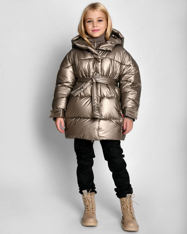 Пухова куртка для дівчаток від 6 до 17 років. Модель силуету кокон. Наповнювач екопух 310, легкий і гіпоалергенний, витримує холод до -25°C. Цілісний капюшон із фіксацією на кулісу. Рукав на липучці, для додаткового захисту від холоду. Дві бічні кишені на кнопці. Застібка на блискавку з вітрозахисною планкою та кнопки. Пояс у комплекті.