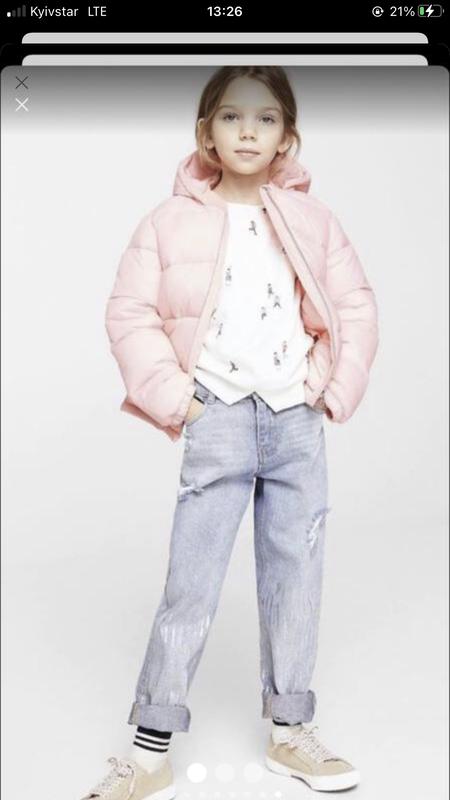 Короткий нежно розовый пуфер - курточка фирмы mango 3-4 р, на рукаве с фирменной эмблемой. Параметры:Рукав -37 и,длина -37,Ширина35