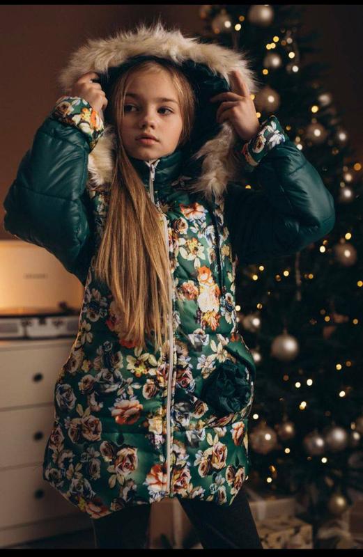 Курточка зимова, на овчині⬆️⬆️⬆️⬆️⬆️ Зелена, квіти тканина не промокає Розміри 116, 122, 128, 134, 140 116: плечі 29, рукав 41, довжина 56, по груді 28; 122: плечі 31, по груді 3 , рукав 44 закачений, довж58, 128: плечі-33 ,рукав 46 закачений; довжина 63, по груді 32; 134- плечі 35, по груді 34, рукав 48, довжина 65 140 -плечі 37, по груді 36, рукав 50, довжина 67 . 850 грн
