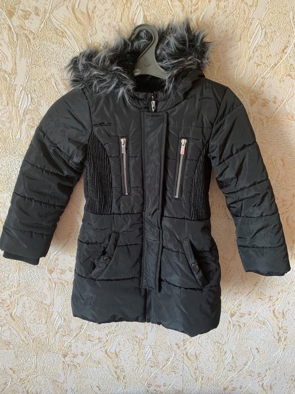 Куртка чорна На 122-128 см До -10 На міховій підкладці Капюшон і опушка не знімаються Молнія в робочому стані 2 гаманця Дуже зручна і тепла Довжина 58 см Рукав 43 см +2 см мандарин ПОГ 36 см