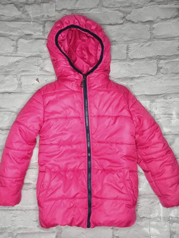 Куртка єврозима на дівчинку, утеплена флісом та синтепоном, легка, не продувається вітром, не намокає під дощем, капюшон не відстібається. Заміри куртки: ширина плечей 29 см, напівобхват грудей 37 см, напівобхват талії 36 см, ширина по низу 33 см, довжина куртки 47 см, довжина рукава від плеча 38 см, від горловини 44 см. Підійде на ріст 104. Стан ідеальний.