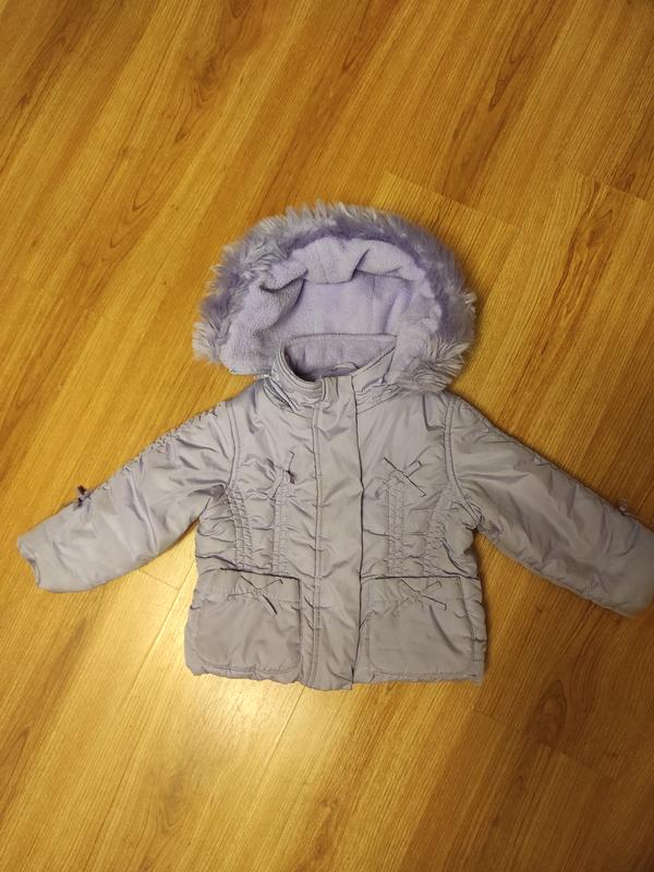 Тепла, але легка зимова куртка на дівчинку. Розмір по бірці 24М. Капюшон на блискавці. Стан добрий, без нюансів, випрасована.