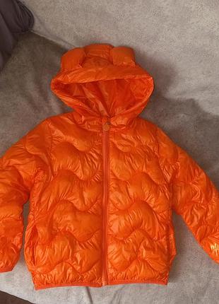 Куртка на зріст 110 см,гарно прошита,два кармани,на капюшоні вушка,без будь-яких дефектів довжина 42 Ширина 36 рукав від плеча 46
