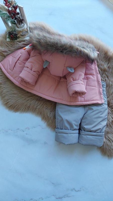 Пудрова Фея Розмір: 86.92.98.104.110. 116 Пудровий комбінезон з чарівнимою нашивкою Сердечки Склад: Плащівка на молоці (MILK) ткань; Курточка на 200 синтепоне+ Овчина Брючки 200 синтепон +флісовая ткань. Опушка Енот (штучний) Капюшон відстібаеється!!!! Увага!!!!!! В курточці ми додали манжет довяз!!! Увага!!!! Курточку стиратпрати, ручной стиркой при 30градусах!!!!!