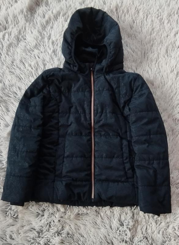 Курточка на флисовой подкладке, имеет эластичные манжеты, цвет темно-синий. Размер 128 длина по спинке 50 ширина в груди 39 рукава 48 Состояние очень хорошее, без дефектов.