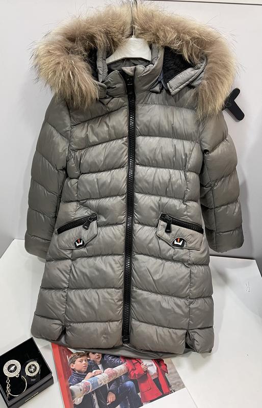 Подовжена куртка з натуральним хутром! На зріст 116-122 Довжина рукава 47см Довжина куртки 68 см Ширина плечей 34 см