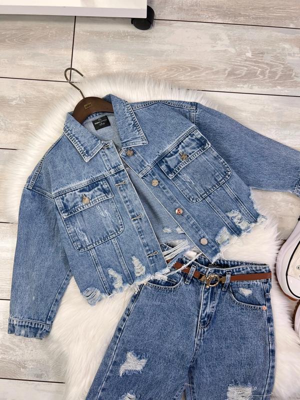 Невероятно стильная джинсовка для девочек ткань плотный джинс, застегивается на пуговицы, рукавчики на манжетах, а накладные кармашки выглядит очень стильно! цена 875 грн длина/рукав от горловины/пог 8р(122-128)-43/54/47 16р(170-176)-58/69/54