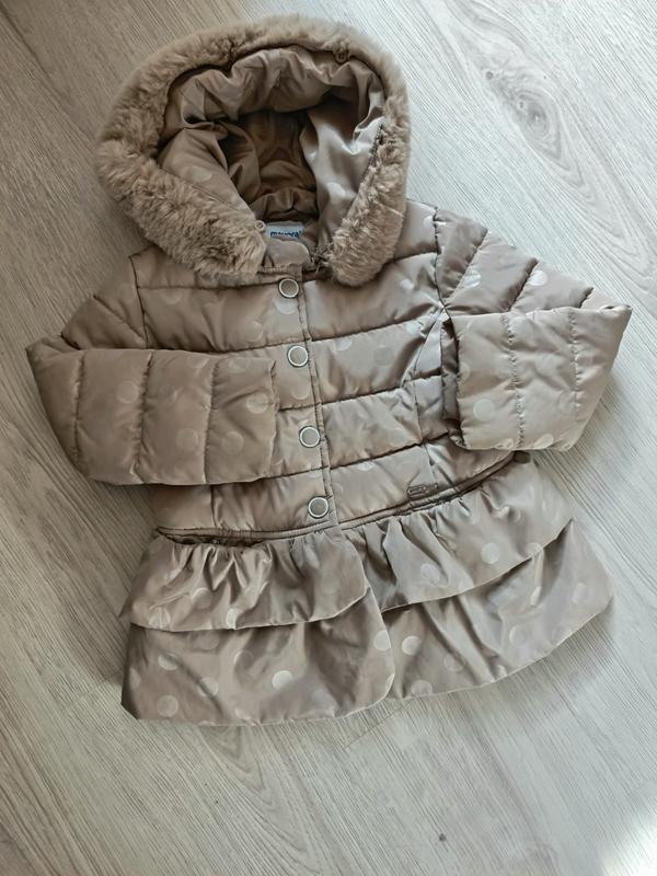Крутезна Демі сезонна куртка для дівчинки,з рюшою внизу. бежевого кольору без дефектів.