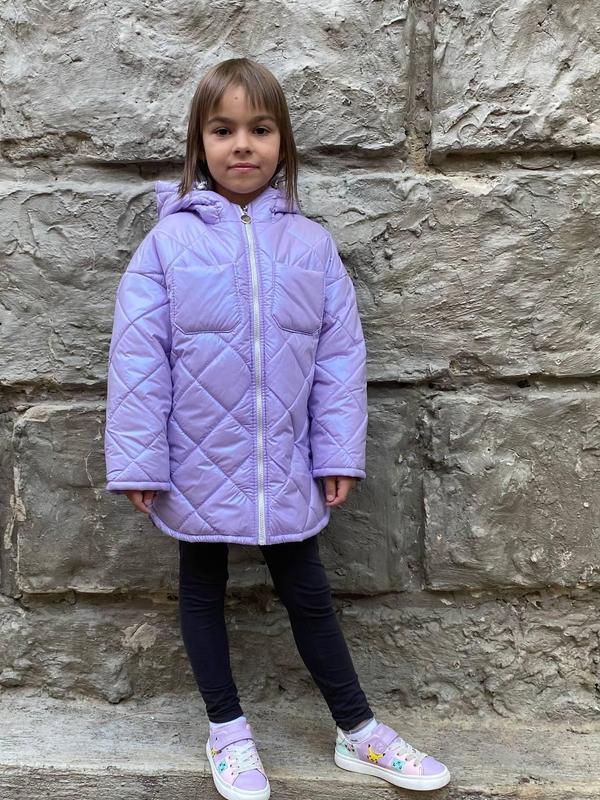 Тканина : стьобана плащівка з перлинним напиленням Наповнювач: холофайбер 100 Підкладка : нейлон Застібка : блискавка 🔹 Виміри: рукав від плеча/ обхват по пахвах/ довжина по спинці Зріст 110: 45/ 80/ 50 Зріст 116: 46/ 82/ 52 Зріст 122: 51/ 84/ 54 Зріст 128: 53/ 88/ 58 Зріст 134: 57/ 90/ 60