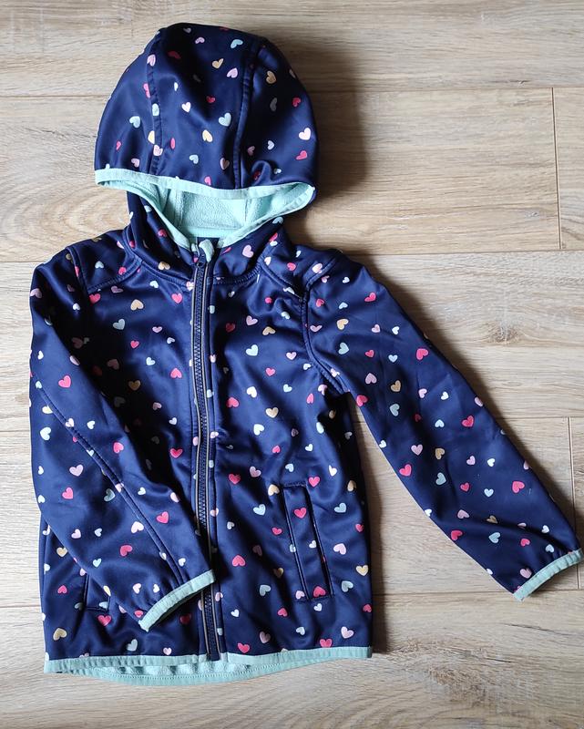 Курточка вітрівка на дівчинку Розмір: 104 Стан: ідеальний. Нюанси відсутні Принт у вигляді сердечок. Якісна та стильна. Відомого бренду. Привезли з Німеччини. Заміри: Довжина 39. Плечі 28. Груди 32. Рукав 36