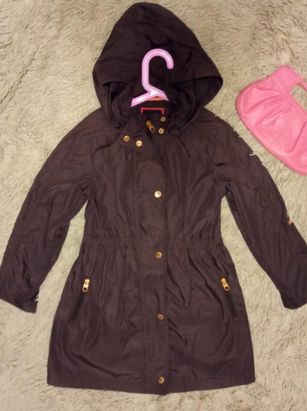 Замечательный плащ для девочки шоколадного цвета, приталеный, с капюшоном, очень красиво смотрится, карманы на замочке, можна регулировать длину рукава. Замеры по груди 38см, длина 65см, длина рукава 45см