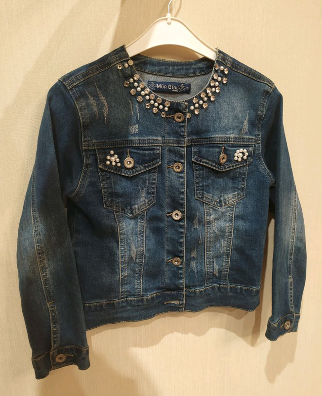 Виробник: Інший виробник Тип одягу: Куртки Розмір одягу: 10/140 Куртка джинсова. На фото може здатися що на рукаві пляма, але це лише тінь. Рукав : 35 см Довжина (від плеча) : 44-45 см