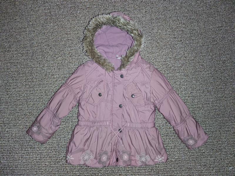 Курточка на прохолодну осінь - весну, всередині на флісі, на ручках манжети-резиночки. Капюшон не відстібається. Спереду є два кармани. По низу є вишивка. Колір пильна роза. Стан прекрасний! Заміри: довжина 42 см, напівобхват грудей 34 см, довжина рукава 35 см.