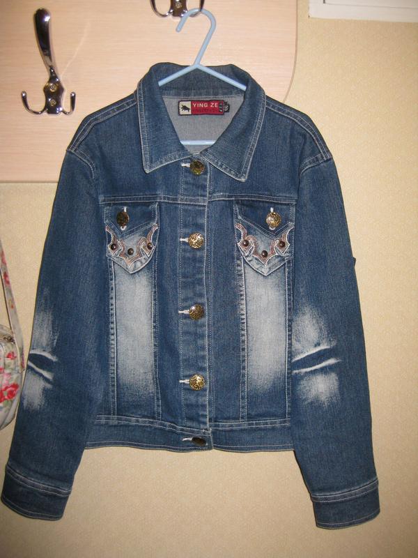 Стильна джинсова куртка. Застібається на гудзики. Жодних дефектів і пошкоджень немає, в хорошому стані. Ріст — від 130 до 145 см Довжина рукава — 48 см Довжина по спинці — 45 см. Ширина плеча — 11,5 див. ПОГ — 43 див.