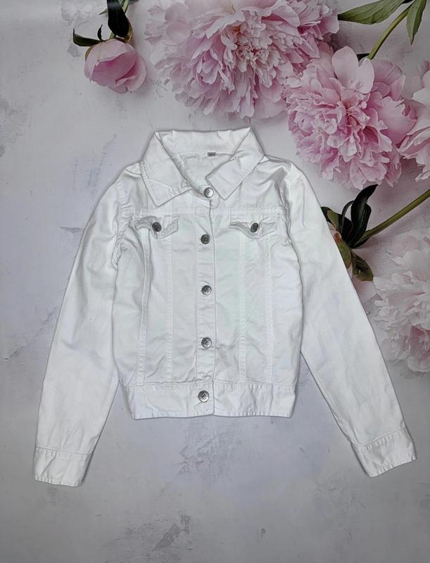 Джинсова куртка білого кольору Стан ідеалу 9-10 лет/134-140 Довжина 46. Пог 36. Рукав 51