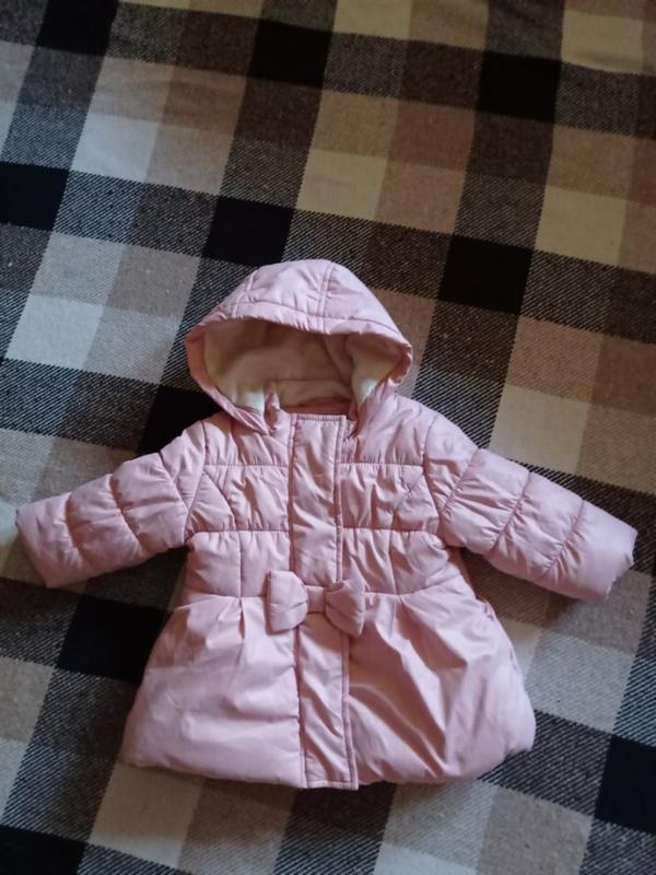 Сток,без бірки.Зсередини утеплена флісом,і капішон також.На 3-6 місяців.Дивіться по замірах.Довжина від капішона по спинці-36см, ширина між плечима -23см,плече від капішона -5.5см,рукав від плеча -23см,пог-29см