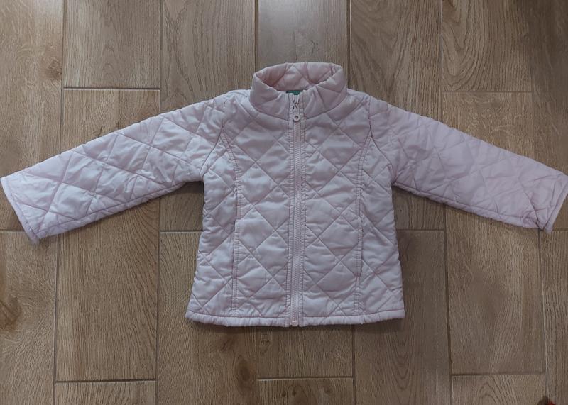 Легкая бледно-розовая куртка, в очень хорошем состоянии. Сезон весна/осень, высокий воротничок для более надежной защиты, водонепроницаема. Размер производителя 90см.