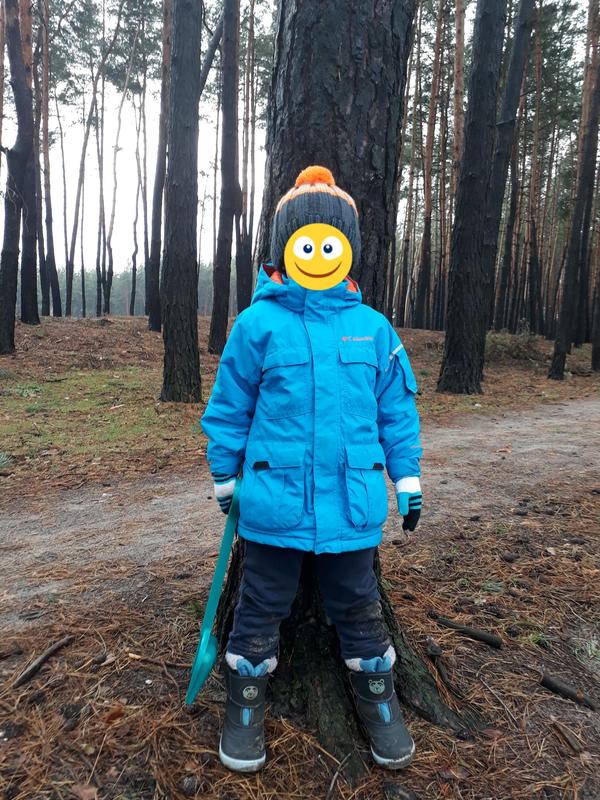 Куртка очень красивая, теплая, удобная. Практичная и теплая детская куртка разработана специально для активного отдыха на свежем воздухе. Еврозима. Мыодили и в теплую зиму также. Выстачало на два года в 4 и 5. Эффектов, порезов,пятен нет только небольшие зацепки от липучки с одной стороны. Заміри на фото.