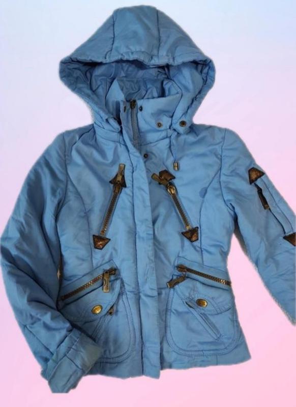 ❀Куртка The Giant демісезонна, з капюшоном, ніжно-блакитного кольору. ❀З коміром - стійкою. ❀З красивими, стильними декоративними блискавками. ❀Два накладних кишені. ❀Застібається на блискавку і кнопки. На внутрішньому підкладка є кишенька. Довжина виробу 50, довжина рукава 56, ПОГ 37, ПІТ 33. В відмінному стані