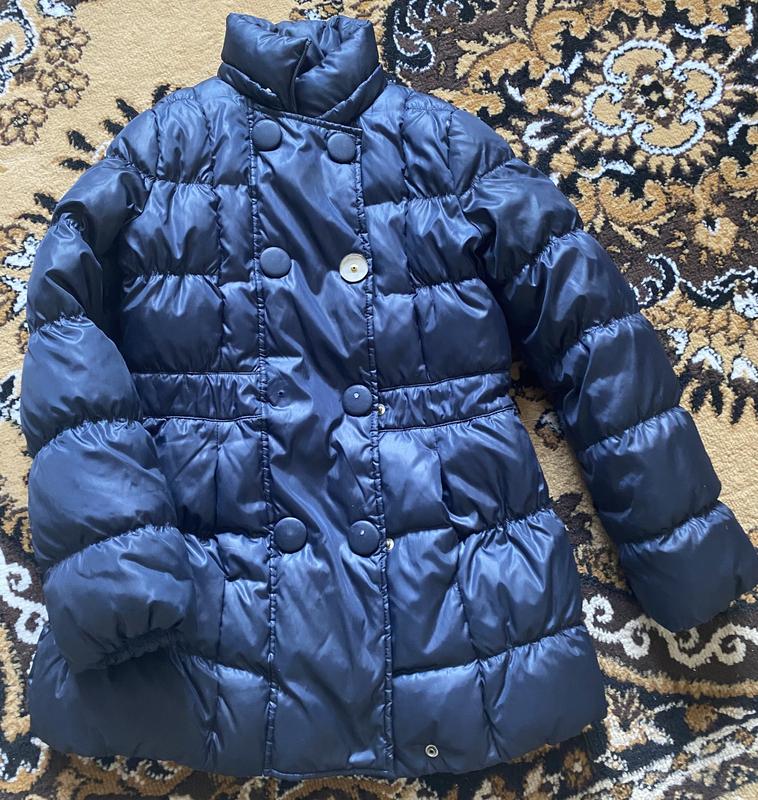 Тепла зимова куртка Колір темно синій Є кармани Довжина 67 см Пог 38 см Рукав 52 см З нюансів- пошкоджені пуговиці( 1 фото)