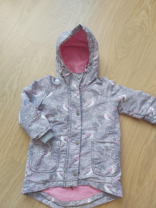 Демісезонна курточка на дівчинку українського бренду "Зіронька". Курточка дуже гарна, на талії затягується затяжками, таким чином можна робити вузчою або ширшою. Курточка ніжного кольору, в дуже доброму стані. Підійде від 2-х до 4-х рочків. Довжина по спинці 50 см, Довжина попереду 43 см, довжина рукава від горловини 40 см, ширина 35 см.