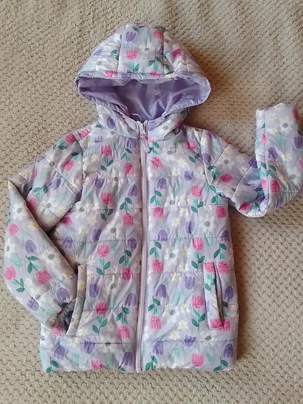 курточка на тонкому синтепоні в ніжно бузкову тоні. Розмір 128. Довжина 49 см., ширина плечей 28 см., довжина рукава 43 см.