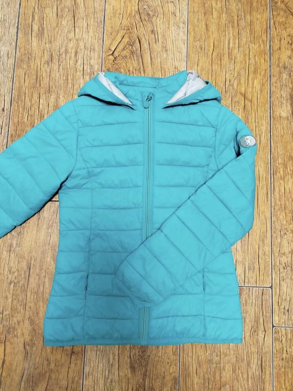 Бирюзовая куртка для девочки на тоненьком утеплителе с капюшоном.