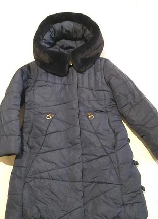 Зимове пальто для дівчинки у гарному стані, дуже зручне і тепле. Довжина виробу 65 см, обхват 39 см, рукав від плеча 47 см.