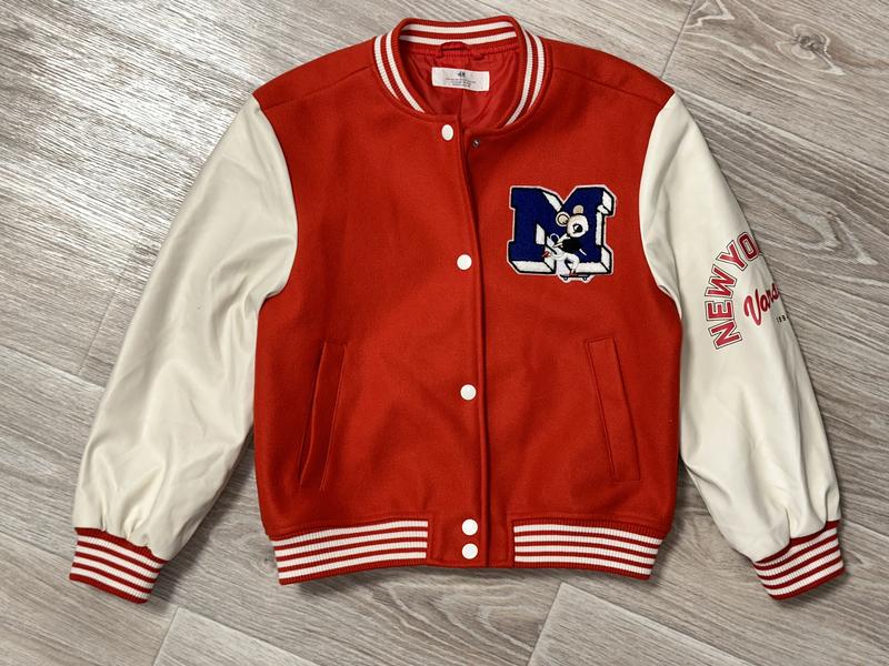 Куртка бомбер с рукавами из экокожи Застегивается на кнопки, подкладка полиестер, карманы. Эластичные манжеты на рукавах. Состояние идеальное 🏷️H&M 8-10 лет/134-140 Длина 51. ПОГ 45. Рукав 49-60