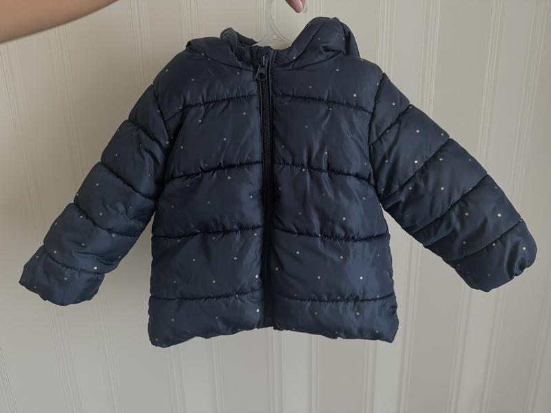 Куртка демісезонна для дівчинки розміру 74-80(по бірці пише 12 місяців). Куртка підходить на холодну осінь та теплу зиму,має щільну флісову підкладку .Бренд KIABI(купувалася в Німеччині) Стан ідеальний(вдягнули пару разів)