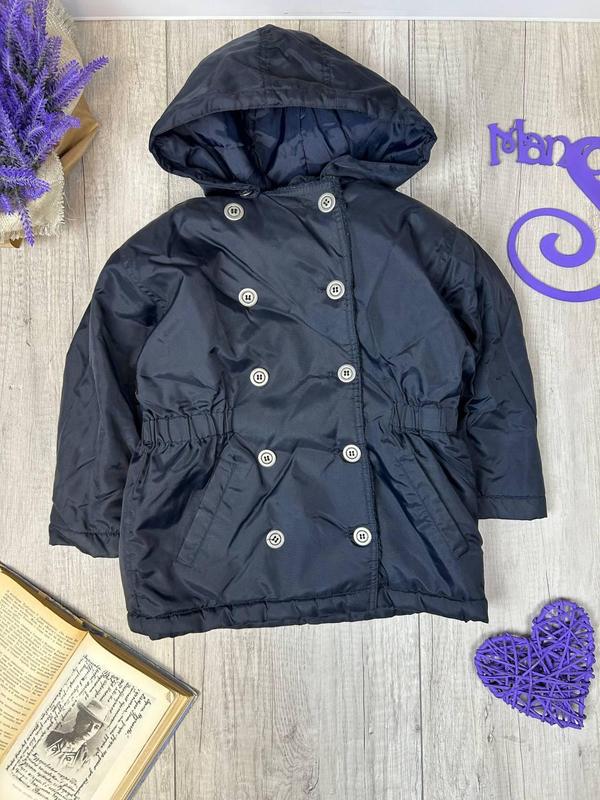 Куртка для дівчинки єврозима. Колір чорний. Куртка на хутрі застібається на гудзики у два ряди. Капюшон знімний, дві бічні кишені, на талії з боків гумка. Стан: б/в, в ідеальному стані Країна виробник Таиланд Розмір 104-110 (4-5 років) Колір чорний Склад: верх 100% нейлон, підкладка 100% акрил, підкладка рукава 100% нейлон Виміри: напівобхват грудей 39 см напівобхват талії 38 см, напівобхват стегон 43 см, довжина рукава 36 см, ширина по плечах 36 см, довжина 56 см