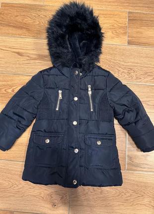 Очень теплое и удобное зимнее пальто для девочки. Размер указан 2-3 года, носили на 98 см. Замеры указаны на фото.