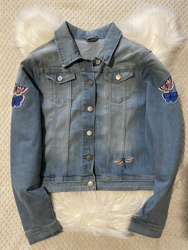 Джинсовая куртка на девочку Размер 164, на 13-14 лет Также подойдет на 12 лет Плечи 38 Пог 46 Пот 45 Рукав 59 Длина 50 Тянется Стан Идеальный