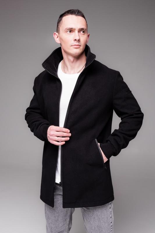 Чоловіча чорна подовжена куртка з кашеміру комір стійка "city"