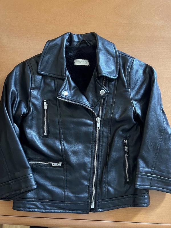 Куртка з еко шкіри чорного кольору Manqo, ( косуха): довжина 39, довжина плеча 8, довжина рукава від пройми 36, напів обхват в грудях 34 см, напівохват в бедрах 36 см, в середині підбита штучним хутром.