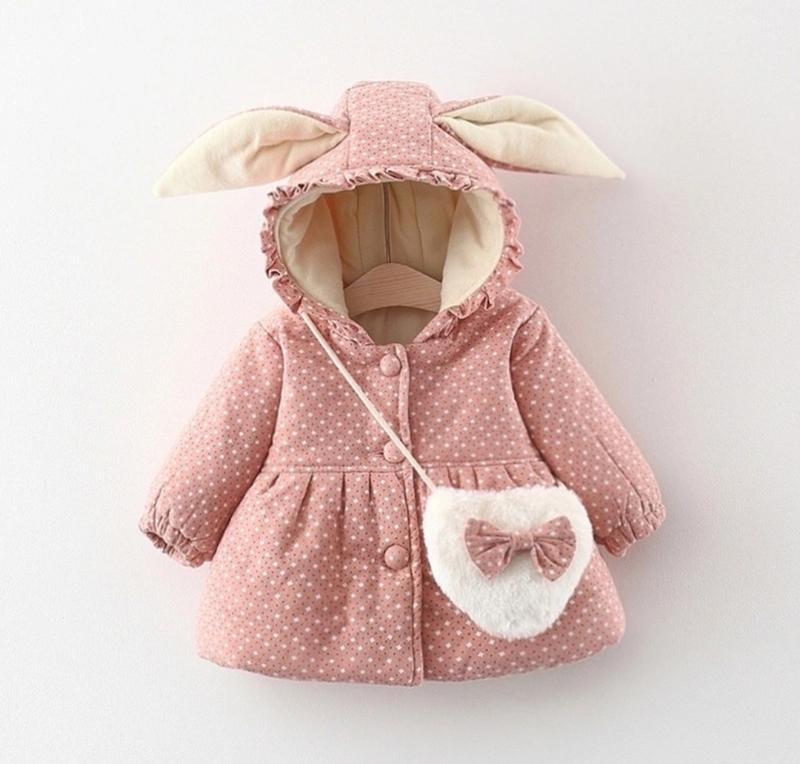 В наявності ✨✨✨ Стильна осіння куртка з сумочкою для дівчаток 🥰 З милими вушками 🐰 Утеплювач -синтепон .Підкладка фліс . Сезон -осінь/холодна осінь На ґудзиках Якісна ,тепла та практична нс 110/12 - довжина 44 см, шир 34 см, рукав 36 см(1 шт) замір рукава від капюшона