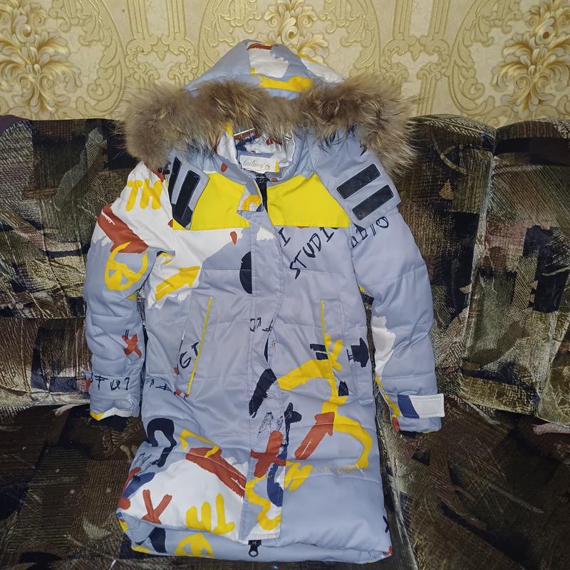 Продам б/у в гарному стані (дефект - невеликі, майже непомітні 2 цятки зліва на грудях) зимову куртку для дівчинки. Матеріал якісний - не пропускає воду, наповнювач - 100% Poliester. Тепла та легка, з капюшоном та хутром. Розмір 10, на зріст 140 см. Напівобхват грудей готового виробу - 44 см, довжина рукава від плечового шва 58 см. Довжина виробу по спинці - 82 см. Копюшон відстібається.