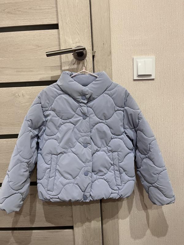 Класна курточка зара на дівчинку,на кнопочках.Розмір вказан 7р. Довжина 41см,ширина під рукавами 37см,довжина рукава від плеча 41см. На фото показані невеличкі плями,видно якщо придивлятися.Одна на рукаві,одна внизу карманчіка,і одна цяточка на плечі.