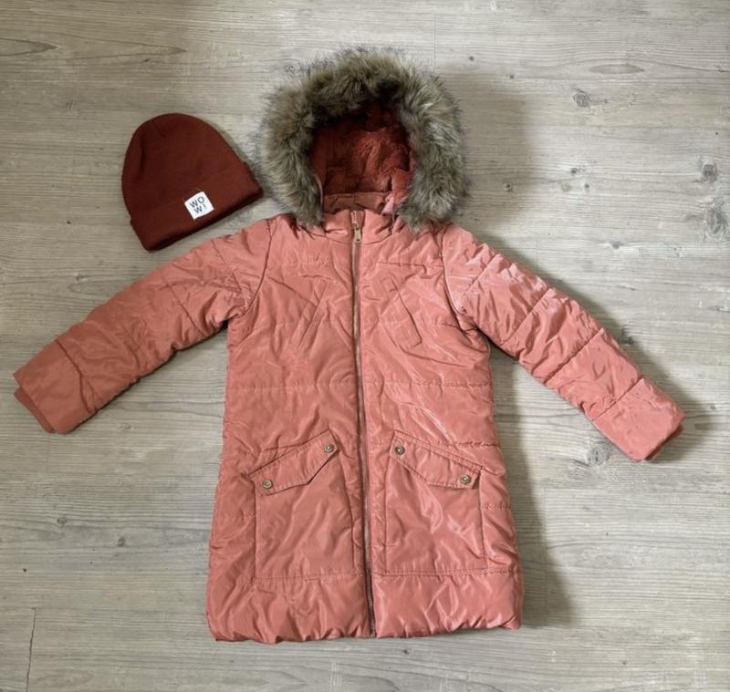 Стан гарний. Хутро знімається. Переться в пральній машині, все супер! Рукав 44-45 см Довжина 64 см, попку прикриває Шапка +50 грн . Колір куртки відповідає кольору на дитині Нюанси в середині під блискавкою (є на фото)