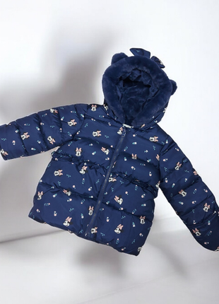 Неймовірно гарна куртка від відомого англійського бренду George принтована мімішними Мікі та квітками, капюшоном з бантом та вушками. Ручки відкриті/ закриті Утепленна флісом Є захист від вітру та вологи Колір: темно - синя . Розмір: 18-24м . Заміри по запиту